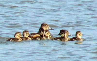 I did see two families of Ring-necked Ducks on the marsh this morning, one I had seen before, but also this one with nine chicks (two out of the shot) that was new to me. They are diving ducks, so the higher water level doesn't affect them.